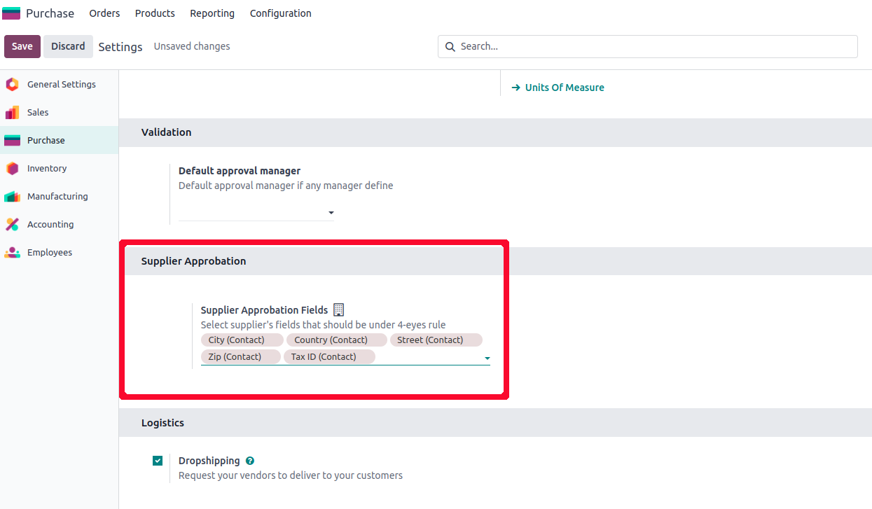 La désignation des champs critiques nécessitant l'approbation de la direction peut se faire dans les paramètres d'achat. 🛠️