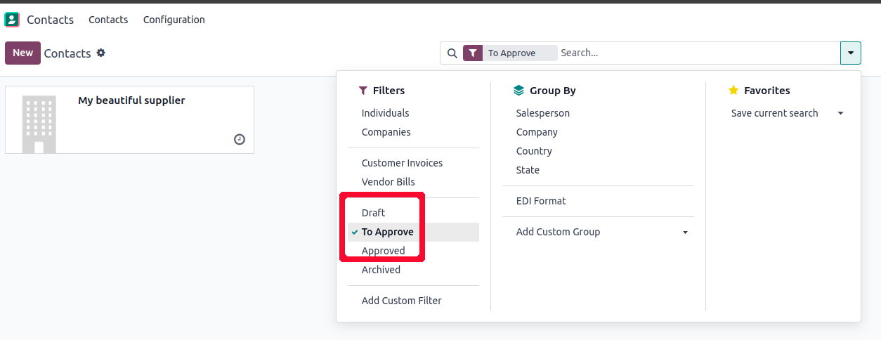 - Lors de sa création, un nouveau fournisseur se voit automatiquement attribuer l'état "brouillon".