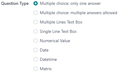 - Une grande variété de types de questions pour des enquêtes sur-mesure : Créez des questions adaptées à vos besoins spécifiques. Choisissez parmi une large gamme de types de questions, tels que des champs de texte à ligne unique ou multiple, des valeurs numériques, des dates, des questions à choix unique ou multiple, et même des matrices. Cette flexibilité vous permet de recueillir précisément les informations dont vous avez besoin, que ce soit des feedbacks qualitatifs, des notes, ou des données plus structurées. La prévisualisation en temps réel vous aide à visualiser le rendu final pour affiner l'expérience de vos participants.