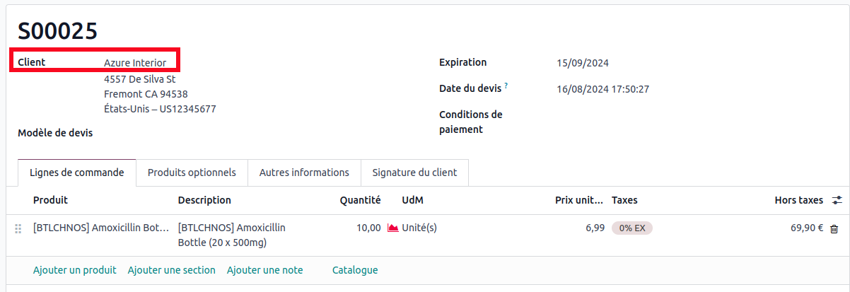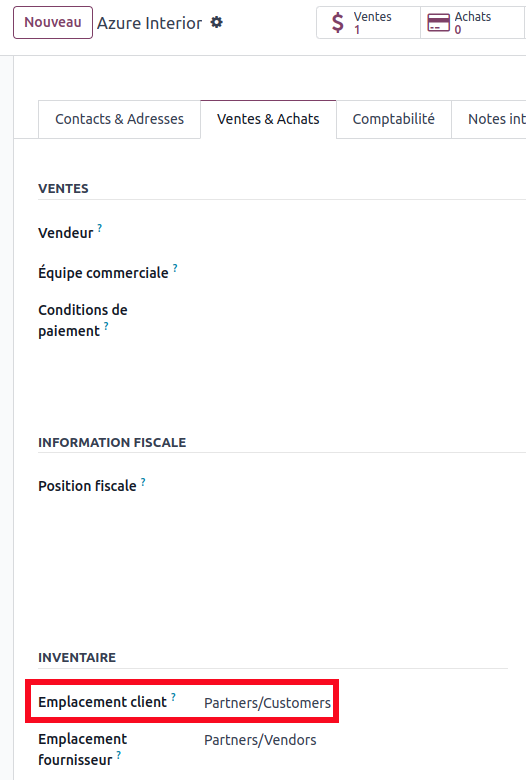 Dans Odoo, une vente est toujours liée à un client, lequel est associé à un emplacement client où le besoin de livraison est généré.