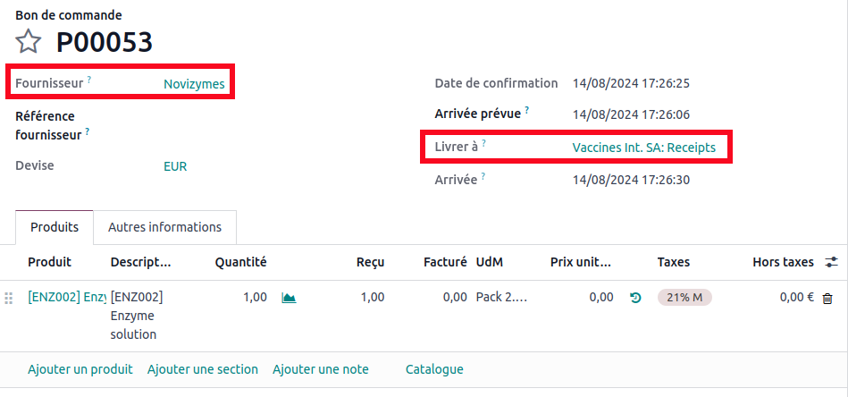 - Une commande d'achat crée un besoin de réception sur un emplacement interne.