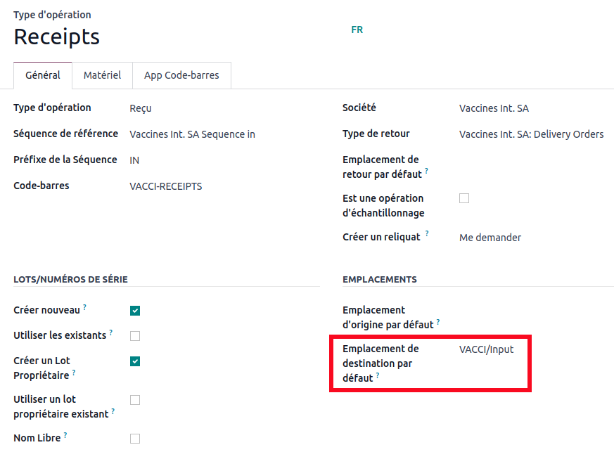 - Définition des données nécessaires : Création des articles, emplacements et types d'opérations requis.